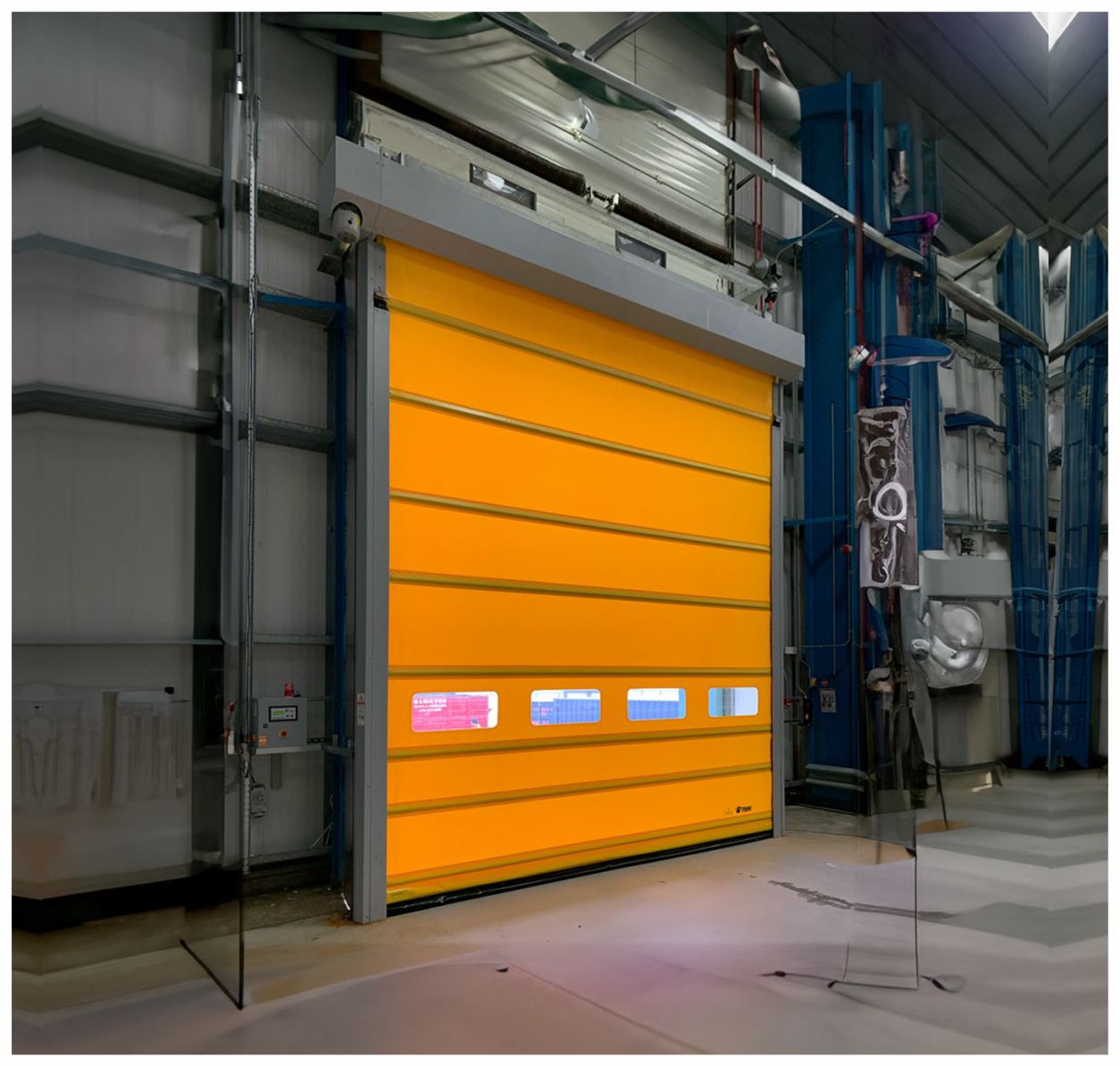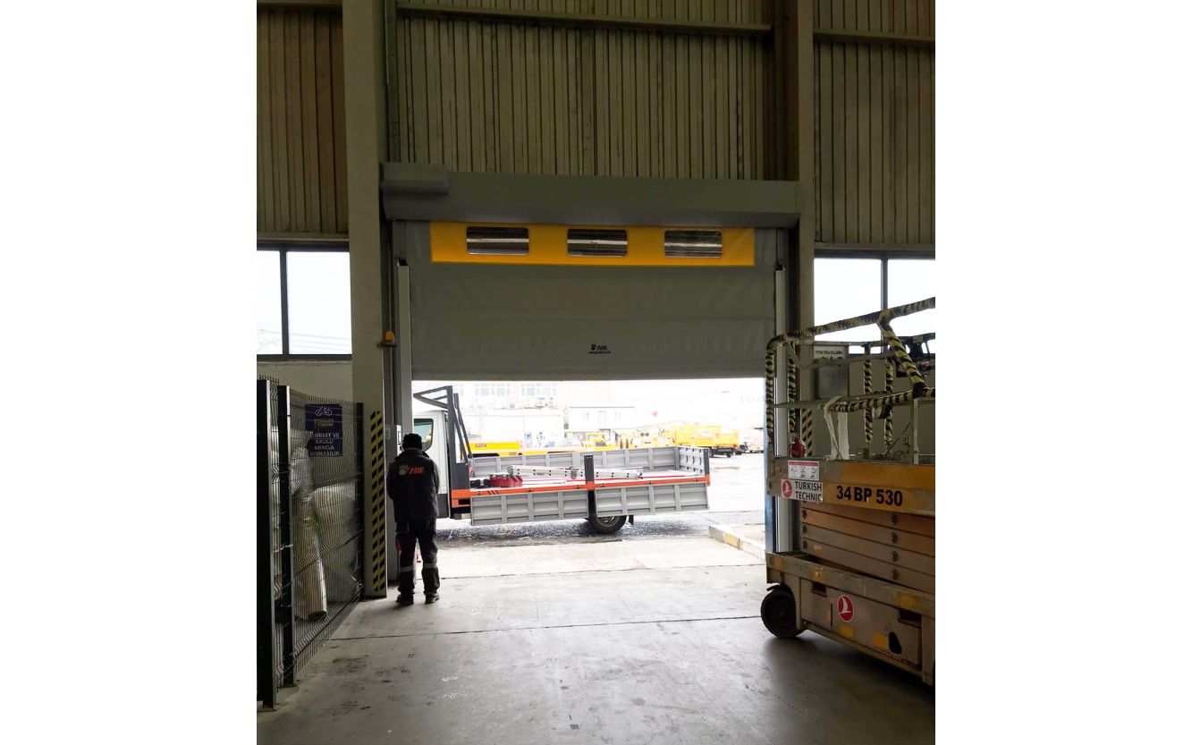 Kendini Tamir Eden Kapılar, forklift ve araç trafiğinin yoğun olduğu alanlarda oluşabilecek çarpma ve kazalara karşı dirençlidir.
